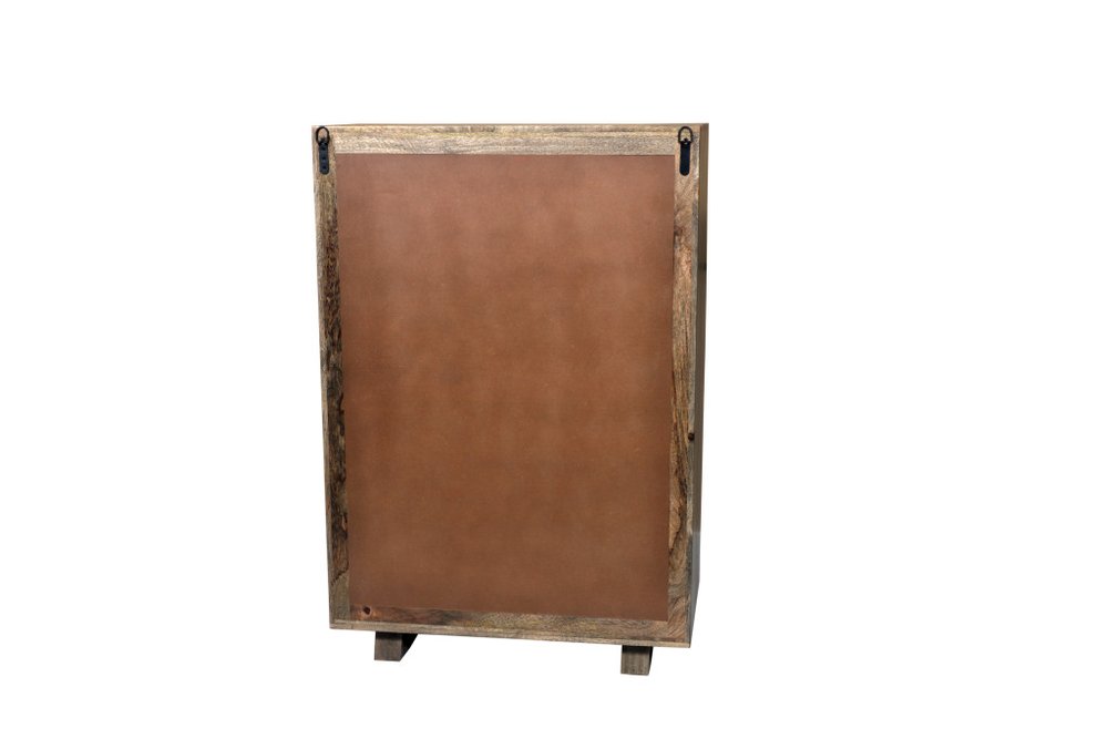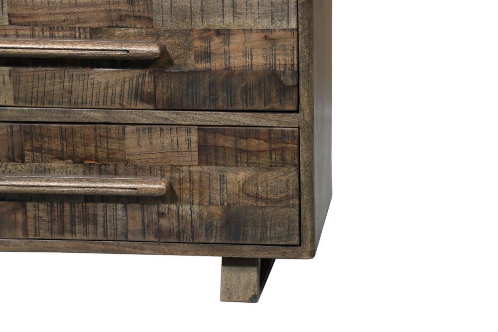 Add personality to your bedroom style and a feeling of coziness with this 35-inch brown carved geometric solid wood five drawer dresser. This vertical standard dresser has a convenient and wide top area for your getting ready needs and supplies. Equipped with five easy open drawers for practical and good looking clothing storage. This dresser is built to last from high quality solid mango wood in a rustic multi-tonal and textural finish. 52.00-inch h x 35.00-inch w x 18.00-inch d.