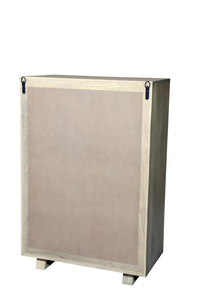Enhance your room into a visually delightful and highly functional space with this 35-inch gray carved geometric solid wood five drawer dresser. This vertical standard dresser has a convenient and wide top area for your getting ready needs and supplies. Equipped with five easy open drawers for practical and good looking clothing storage. This dresser is built to last from high quality solid mango wood, the multi-tonal gray coloration of this piece is neutral and will blend easily with most any decor. 52.00-inch h x 35.00-inch w x 18.00-inch d.