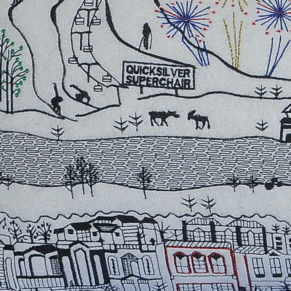 Showcase this famous city, with our Breckenridge Daylight Skyline Queen Size Lumbar Decorative Pillow. The daylight view of Breckenridge is picture perfect. The gorgeous art features many famous landmarks and references for this destination city, rendering a modern whimsical way to bring this iconic cityscape to life. Made of a wool/nylon blend, this high quality stitched decorative pillow features black on white embroidered artwork mixed with pops of color that highlight important and recognizable icons from this popular Colorado city known for its snow sports, fine dining, and resorts. This pillow makes a great gift, decorative accent and conversation piece. 14-inch H x 35-inch W x 4-inch D