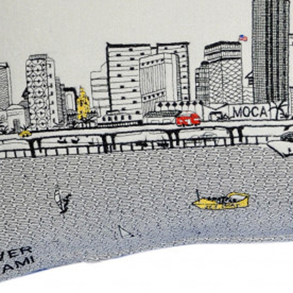 Showcase this famous city, with our Miami Daylight Skyline Queen Size Lumbar Decorative Pillow. The daylight view of the Miami, is picture perfect. The gorgeous art features many famous landmarks and references for this destination city, rendering a modern whimsical way to bring this iconic city to life. Made of a wool/nylon blend, this high quality stitched decorative pillow features black on white embroidered artwork mixed with pops of color that highlight important and recognizable icons from this popular Florida city, fondly called the The Magic City. This pillow makes a great gift, decorative accent and conversation piece. 14-inch H x 35-inch W x 4-inch D