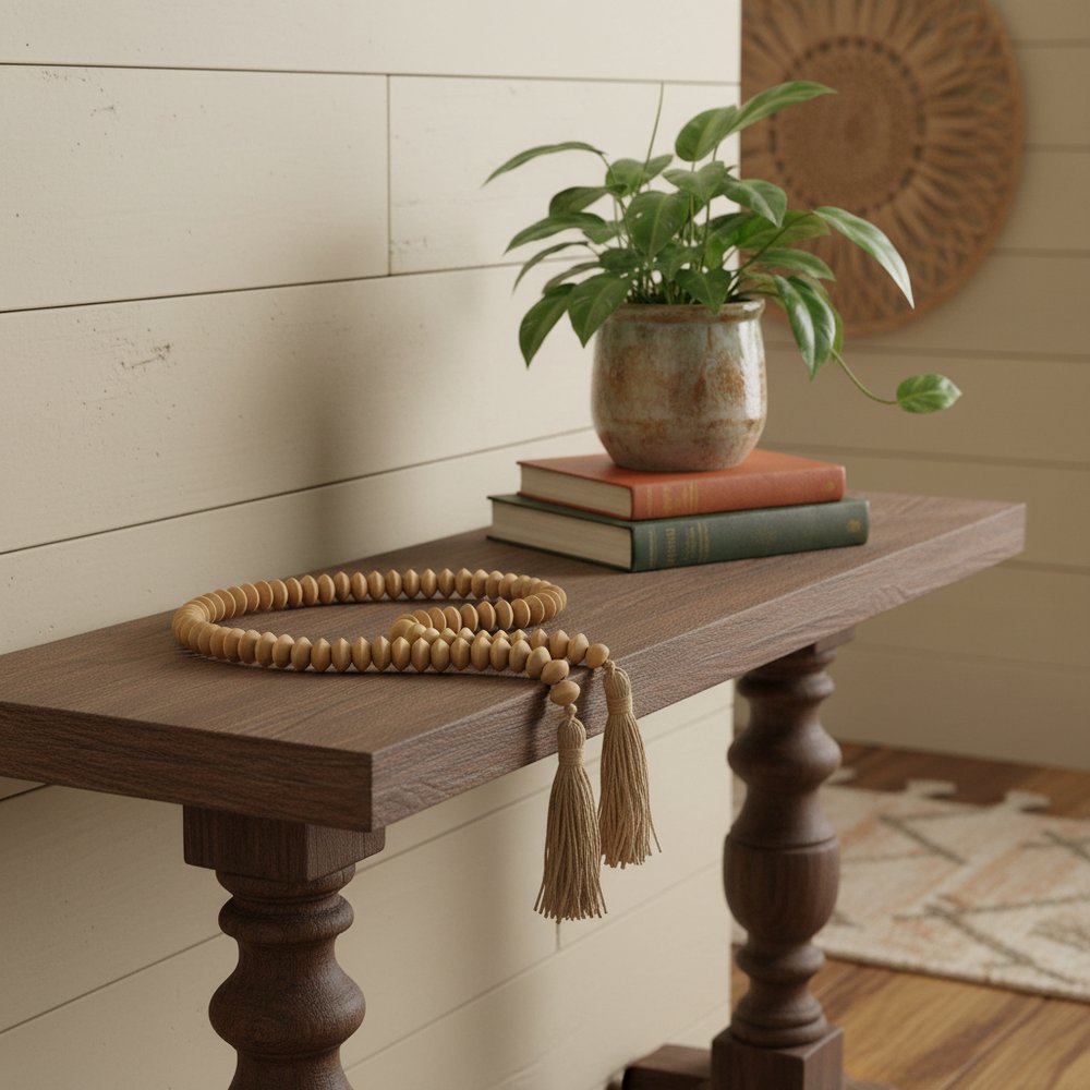 Unique and decorative, this 36-inch brown rope and wood hand painted decorative tassel will leave a lasting impression. This charming and versatile decor can be used as a tabletop decorative accent and can also be hung or strung. Handmade by true artisans, this garland is crafted from abacus style brown wood beads and jute. It's a perfect addition for those who love an up-to-the-minute look and feel. 0.50-inch h x 36.00-inch w x 0.50-inch d.