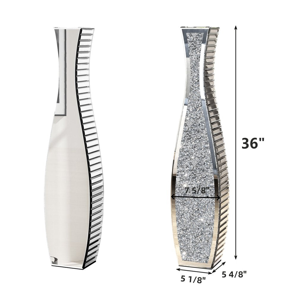 Ideal for displaying faux or dried flowers, it effortlessly elevates your home ambiance. This stunning floor vase showcases an exquisite blend of faux crystal and mirrored glass that adds a touch of elegance to any room. Its unique design captures light beautifully, creating a shimmering effect that draws attention to your floral arrangements. Perfect for adding height and drama, it serves as a striking centerpiece in your living space. The versatile style allows it to complement various decor themes, making it a perfect addition to your home. Enhance your interior with this eye-catching statement piece that brings sophistication and charm to your environment. 36.10-inch h x 4.69-inch w x 7.52-inch d.