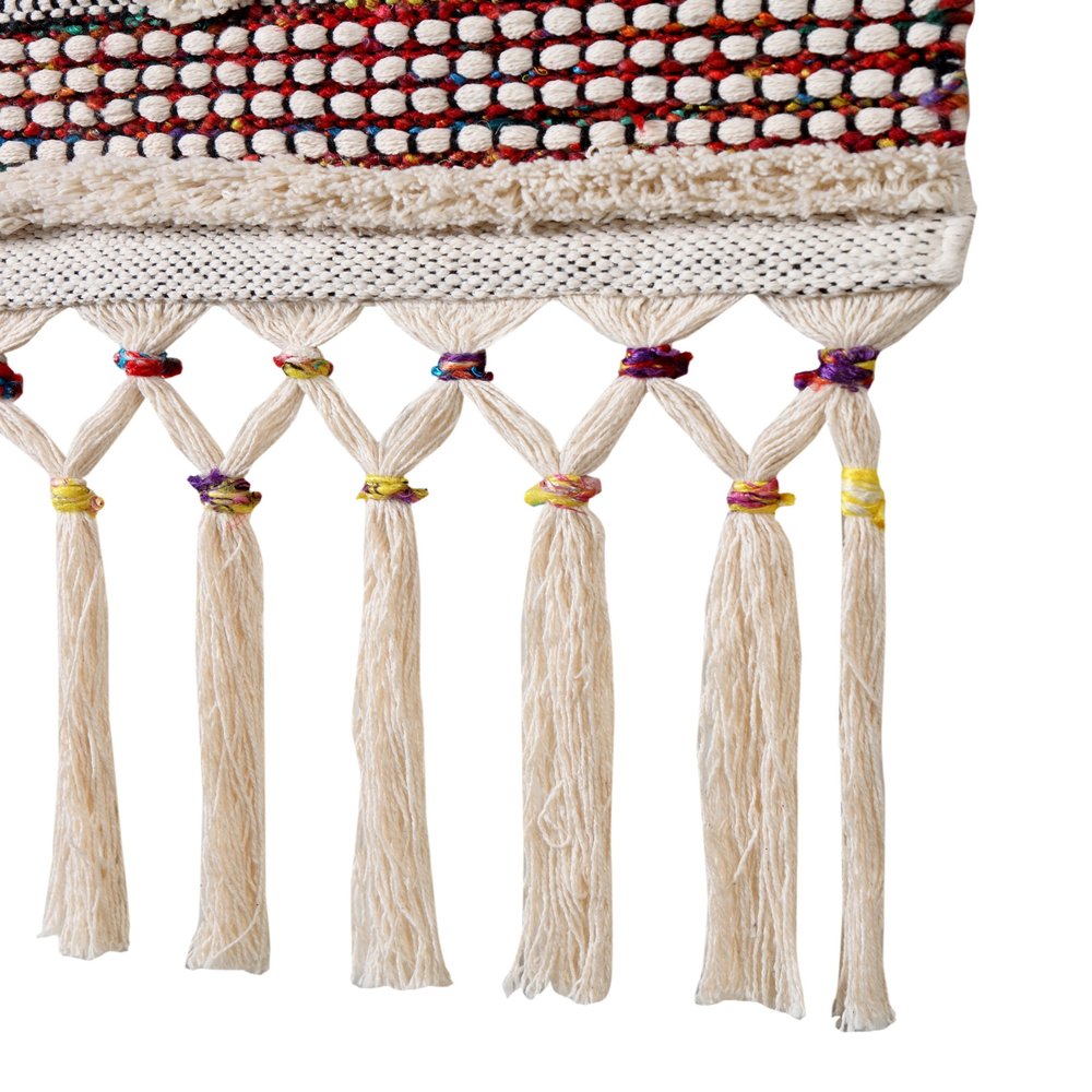 The 36-inch x 20-inch red and white geometric cotton square hanging tapestry adds a vibrant touch to any space. Designed in a square shape, this tapestry is perfect for vertical display, ensuring it captures attention wherever it's placed. Crafted from high-quality cotton, it offers both durability and a soft texture. The southwest style infuses a sense of cultural richness into your decor, making it an ideal choice for those looking to enhance their home with unique artwork. This hanging tapestry serves not just as decor but as a statement piece that combines artistry with warmth, inviting a cozy yet stylish atmosphere into any room. Elevate your wall space with this captivating addition. 36.00-inch h x 19.50-inch w x 0.50-inch d.