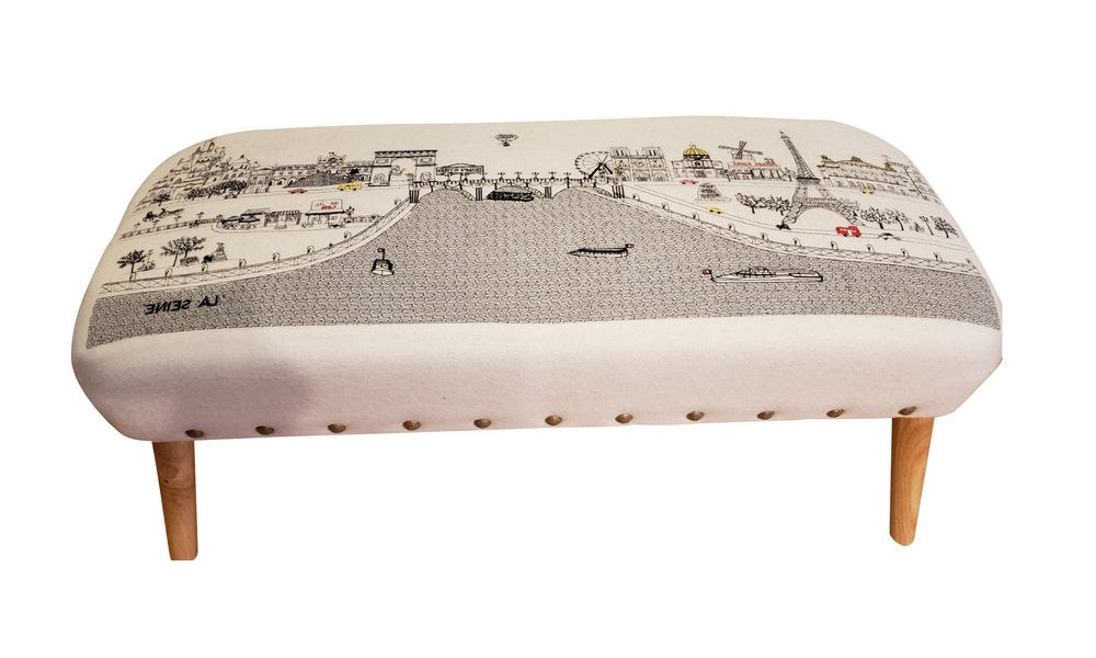 38" Cream Wool and Brown Ottoman