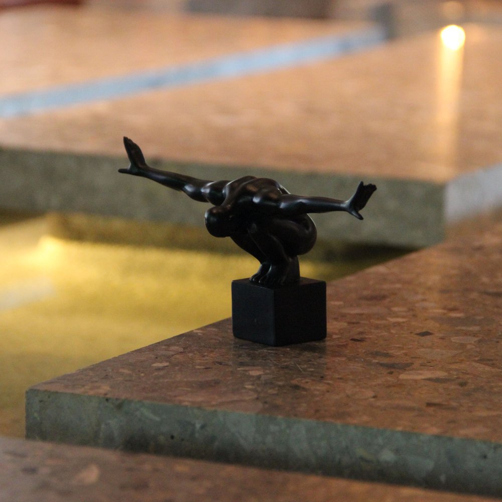 This 4-inch black resin man tabletop sculpture will add a beautiful decorative accent to your decor. Great to use on its own or mix with other decorations for the perfect look. Crafted using machine-made techniques, this piece showcases a modern yet transitional style, making it versatile for various interior themes. The fine resin material ensures durability while exuding sophistication. Ideal for enhancing tabletops, it offers a striking representation of people that captivates the attention of any viewer. This sculpture serves as an exceptional statement piece that complements a variety of home decor styles effortlessly. 3.5-inch h x 7.5-inch w x 2.5-inch d.