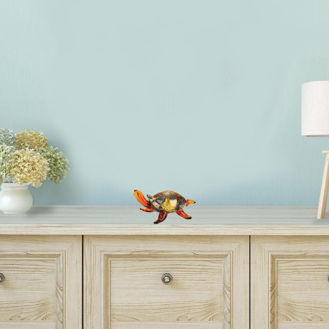 Add an air of fashion to your room and rejuvenate the space with this 4-inch clear brown and green murano glass turtle figurine tabletop sculpture. This clear brown and green hued piece represents high quality, expertly made from high grade murano glass. Update your room with this great tropical sea life decor. Great to use on its own or mix with other decorations for the perfect look. 4-inch H x 5-inch W x 8-inch D
