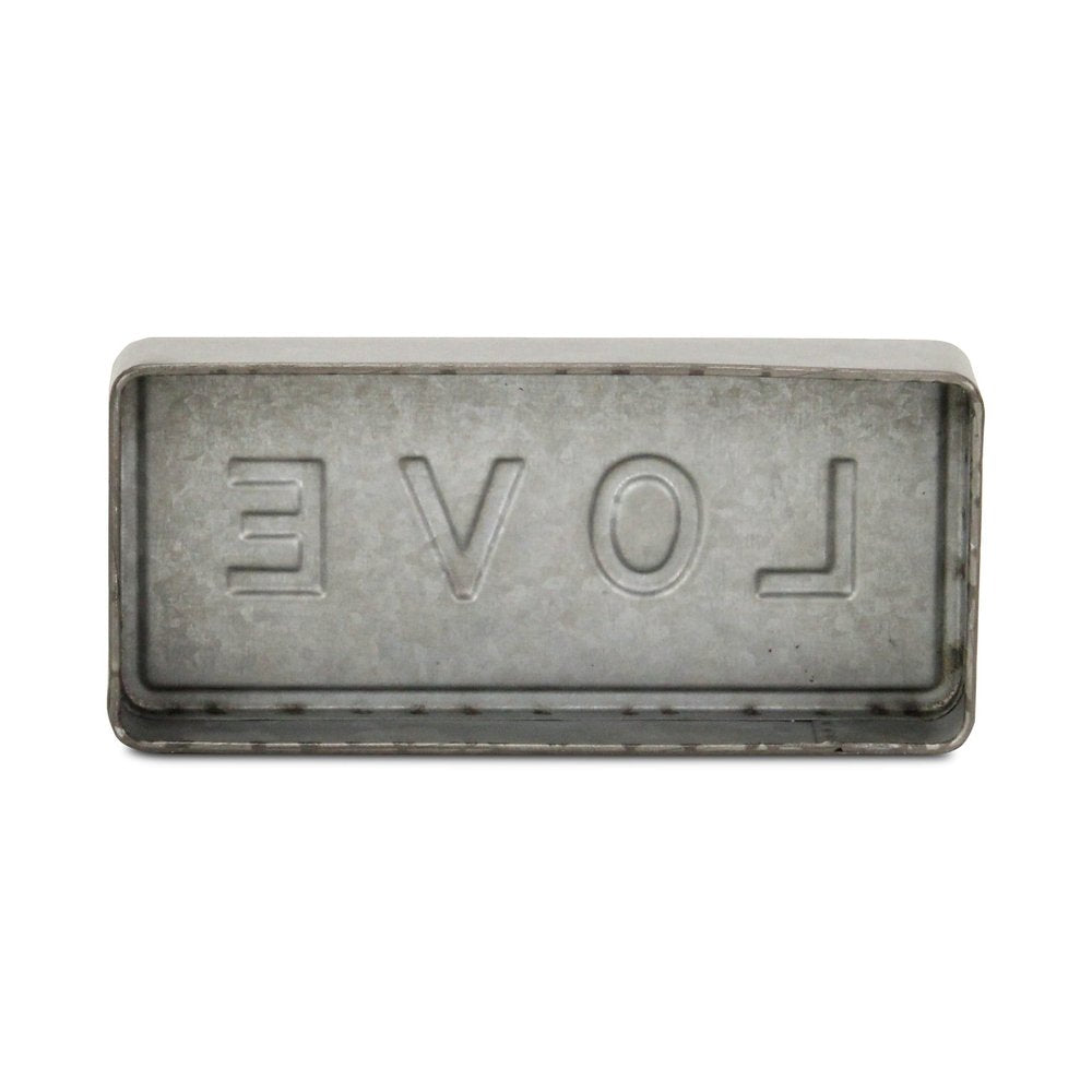 Add an air of fashion to your room and rejuvenate the space with this 4-inch gray and white galvanized metal love hand painted tabletop sign. Crafted with care, this handmade piece showcases intricate details that capture the essence of "love". Its galvanized metal construction ensures durability while providing a charming distressed finish that adds character. Perfectly suited for tabletops, this sculpture effortlessly complements various decor styles and sparks conversation, making it a delightful addition to your home decor collection. 4.00-inch h x 8.62-inch w x 1.38-inch d.