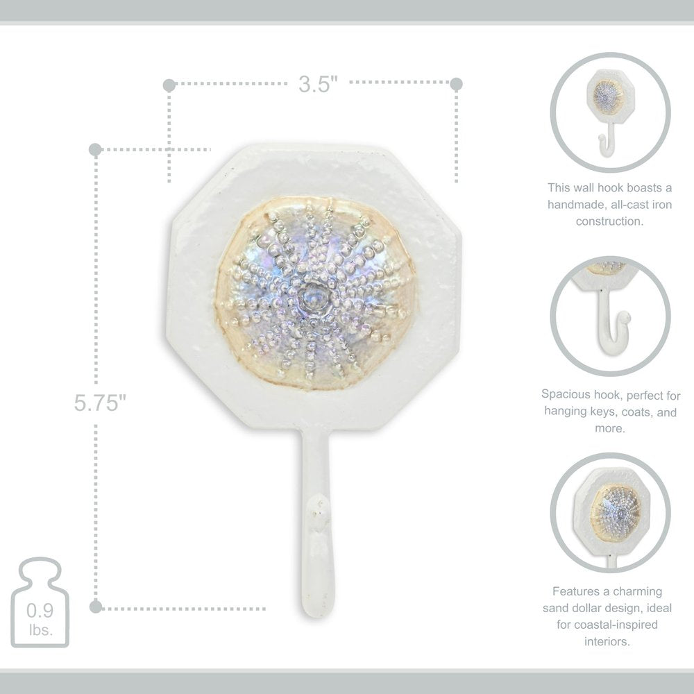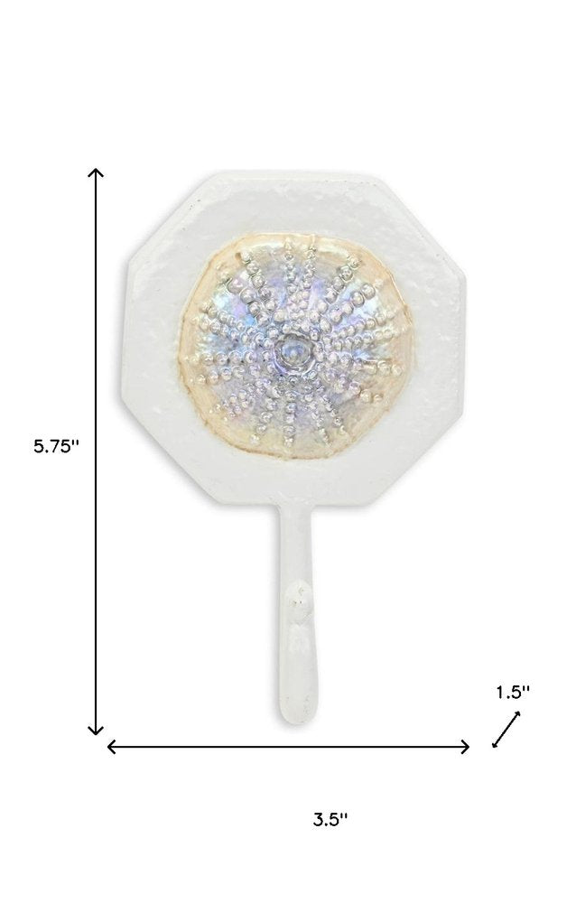 4" Pearl And White Cast Iron Sand Dollar Wall Hook