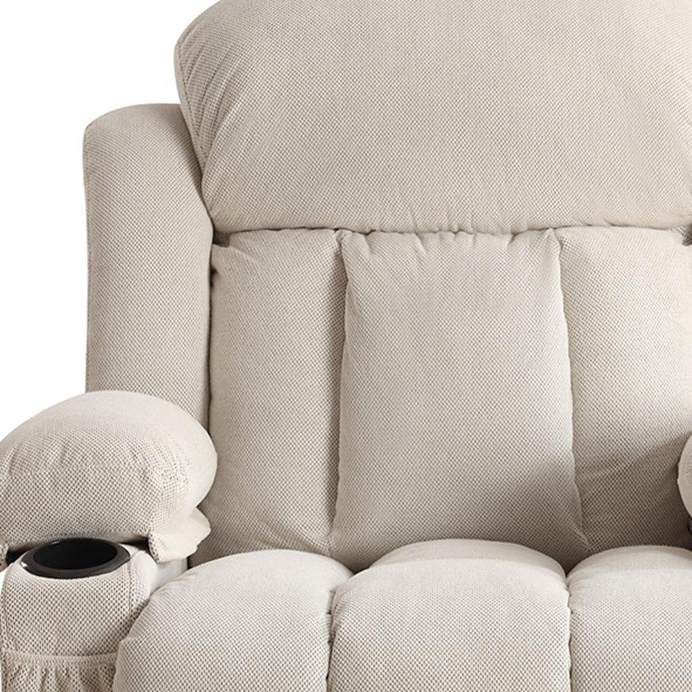 40" Beige Tufted Polyester Blend Heated Massage Swivel Rocker Recliner With USB