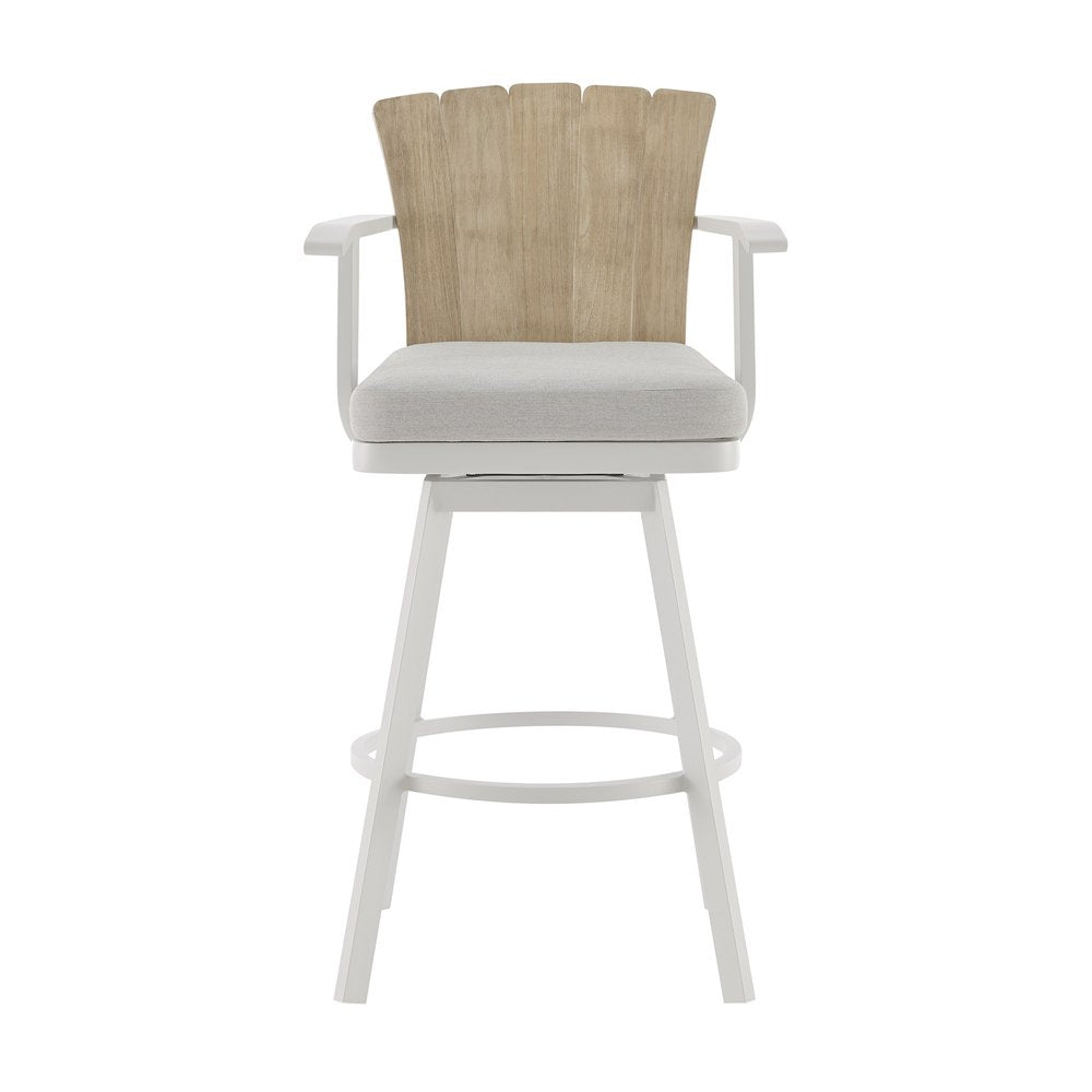 The perfect way to add some extra seating to your outdoor oasis, this 40-inch gray metal swivel outdoor counter height bar chair with footrest will elevate the look and vibe of your space. Let the captivating light gray color make a lasting impression and showcase your unique personality. With these detachable cushions, you have the advantage of being able to easily adjust the firmness or softness of your seating, tailoring it to your specific comfort needs. The convenience of these zipper removable cushion covers makes it easier to keep your outdoor seating looking its best. This gray colored acrylic cushion cover will add a chic and modern touch of neutral color that harmoniously complements your aesthetic while providing good looking, durable and long-lasting support. Not only good looking and stylish, this chair also features a square shaped seat and a full back for the ultimate in comfort and enjoyment. Designed with armrests for your comfort, this chair also features a footrest for balance and convenience. For outdoor gatherings on the deck, yard, patio or poolside, this bar stool is a comfy and trendy option. 40-inch H x 23.5-inch W x 25-inch D