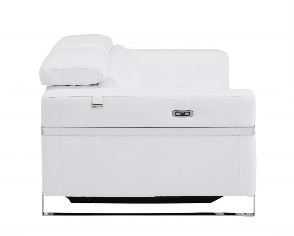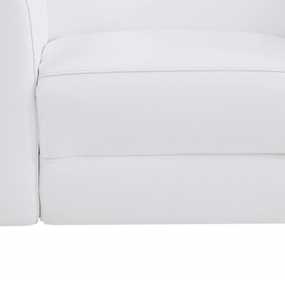 Just what you need, the 41" white italian leather power recliner is supremely comfortable and great looking. Upholstered in high grade, italian leather, this chair will provide a soft and luxurious way for you to relax and rest. The white of this chair is neutral to will blend with most any décor aesthetic. Whether you are starting your day, ending your day, or sneaking in a cat nap in between, this chair is a welcome addition to your space and self-care routine. Take relaxation to the next level with this comfy reclining chair. 31" H x 41.3" W x 43" D