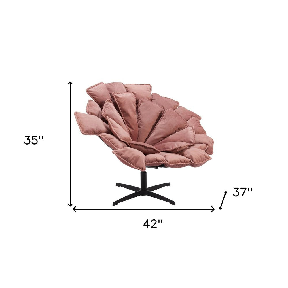 42" Pink And Black Velvet And Upholstered Swivel Side Chair