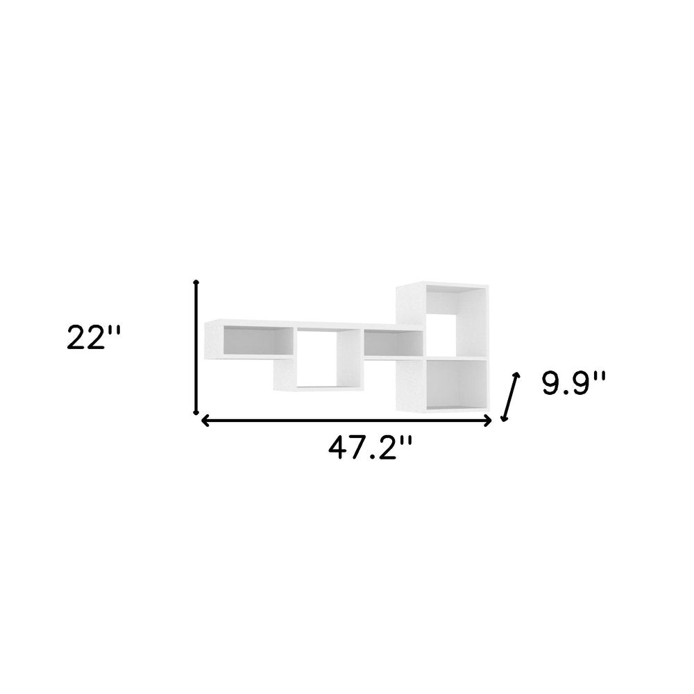 The 47-inch white wood wall mounted cubby shelf brings a touch of modern elegance to your living room. Crafted from high-quality manufactured wood, this shelf combines durability with a sleek aesthetic. Its innovative cubby design offers ample space for displaying your favorite decor items or organizing essentials. The crisp white finish adds brightness and sophistication, seamlessly blending with various interior styles. Perfect for maximizing vertical space, this shelf not only enhances your decor but also ensures practicality in any room setting. Transform your walls into a stylish storage solution while keeping your space clutter-free with this chic wall-mounted option. Elevate your home decor with functional artistry that showcases your personal style. 22-inch h x 47.2-inch w x 9.9-inch d.