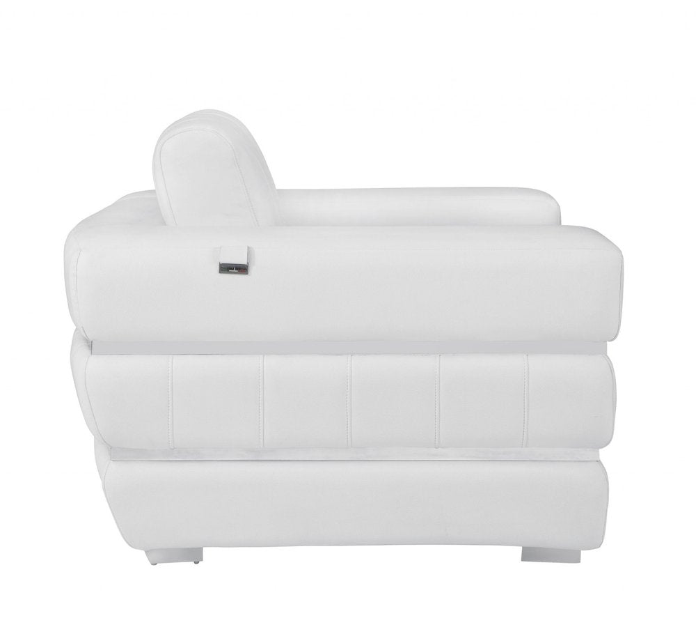 48" White Italian Leather Arm Chair