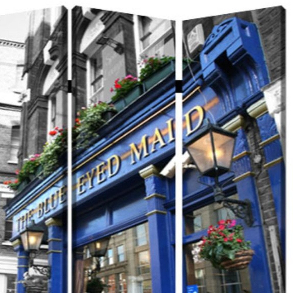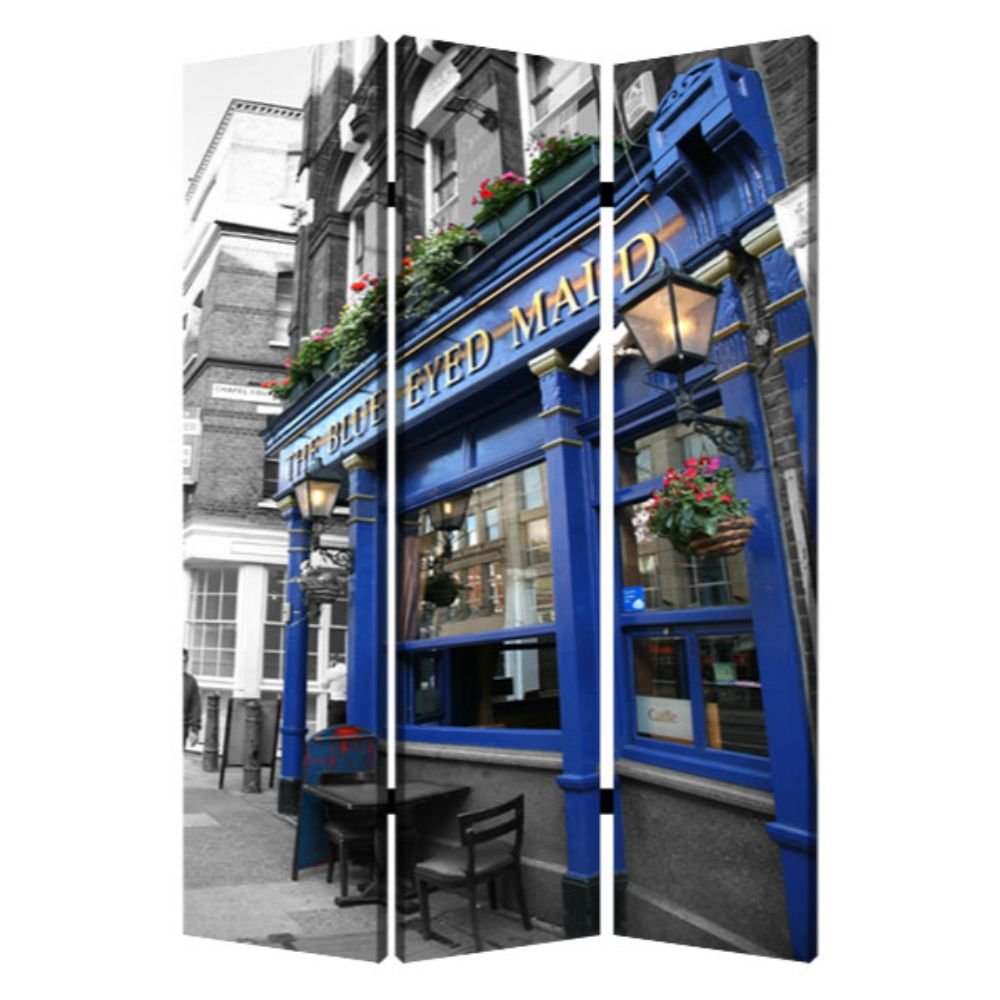 The 72-inch blue and gray canvas folding three panel screen room divider offers a stylish and functional way to create separate spaces in your home. Crafted with a sturdy wooden frame, this room divider ensures both durability and elegance. The three-panel design allows for flexible configurations to fit various room layouts. Made from high-quality canvas, it features a beautiful blue and gray pattern that adds a touch of sophistication to any decor. Perfect for providing privacy or simply enhancing your interior design, this folding screen is an ideal addition to living rooms, bedrooms, or home offices. Its lightweight structure makes it easy to move and reposition according to your needs. 72.00-inch h x 48.00-inch w x 1.00-inch d.