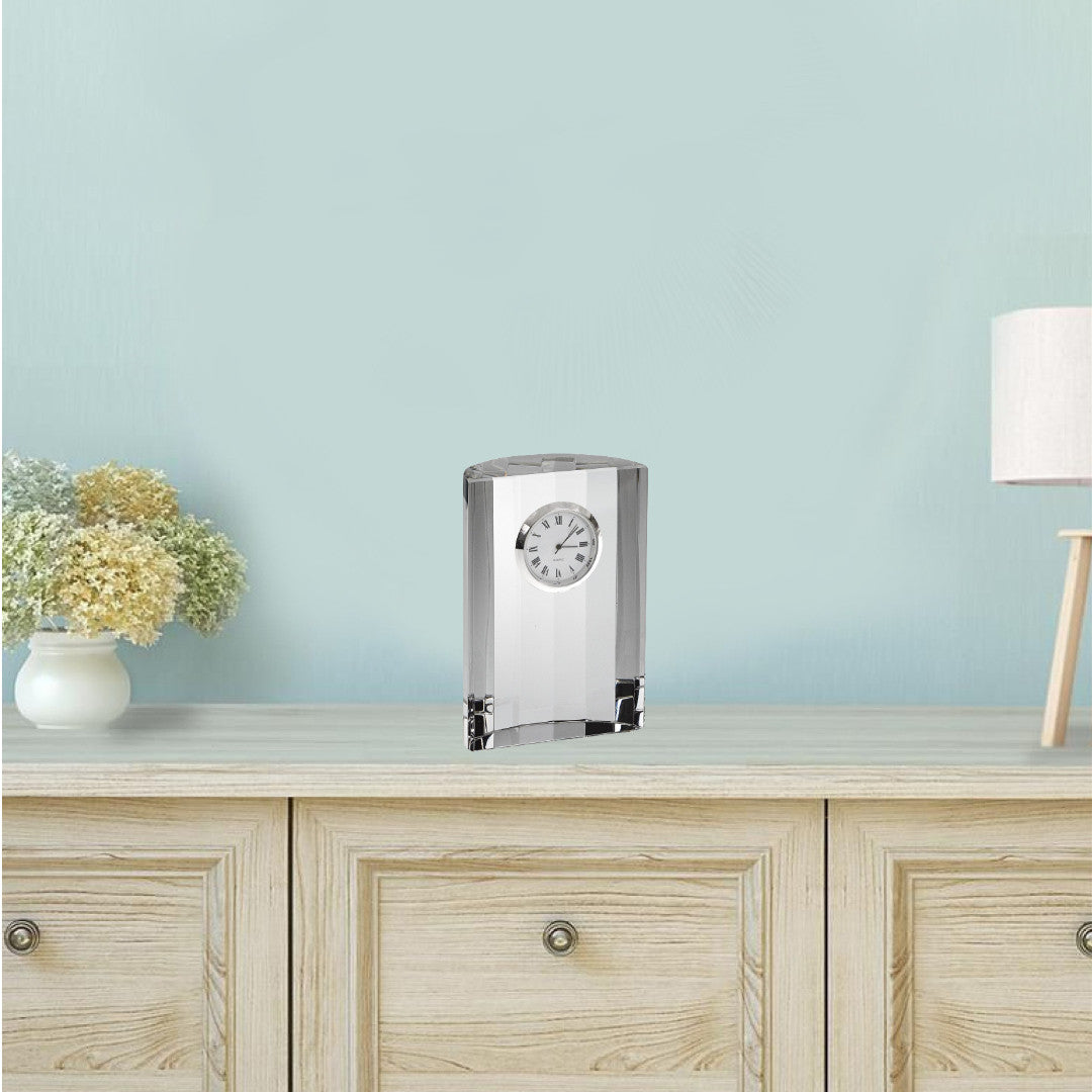 Bring some sizzle to your space with this eye-catching 5-inch clear glass statue tabletop sculpture. This charming decorative accent is expertly made of high grade glass in a clear coloration. This figurine makes a great tabletop accent for your coffee table, counter, bookshelf, mantle, or even dining table. A perfect decorative addition for anyone who loves a stylish look and feel. A perfect decorative addition for anyone who loves a stylish look and feel. 4.75-inch h x 1.5-inch w x 3.5-inch d.