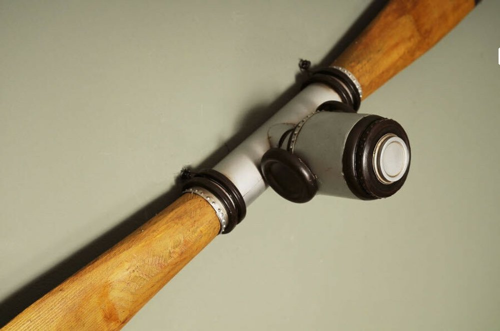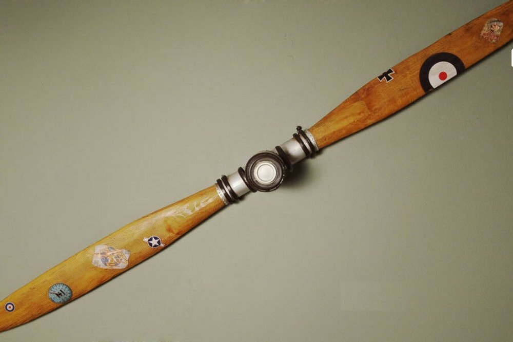 Nothing captures the spirit and nostalgia of the World War I era like this timeless antique propeller. At approximately 79 inches long, this decor piece is perfect for an aviation expert or collector. This vintage propeller is an exact replica of an original propeller from the World War I era. It features solid wood with brass accents and unique designs. A must have for the collector and enthusiast!