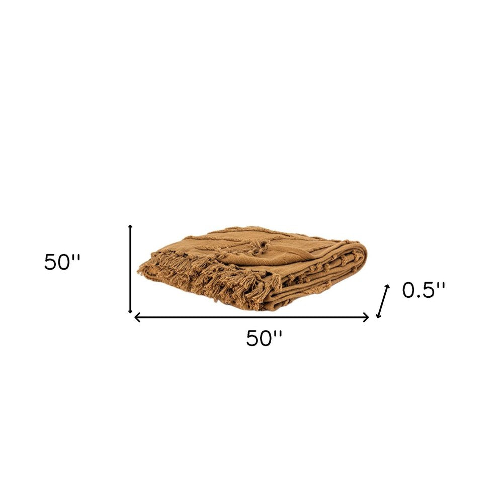 50" X 50" Camel Floral Cotton Woven Throw Blanket