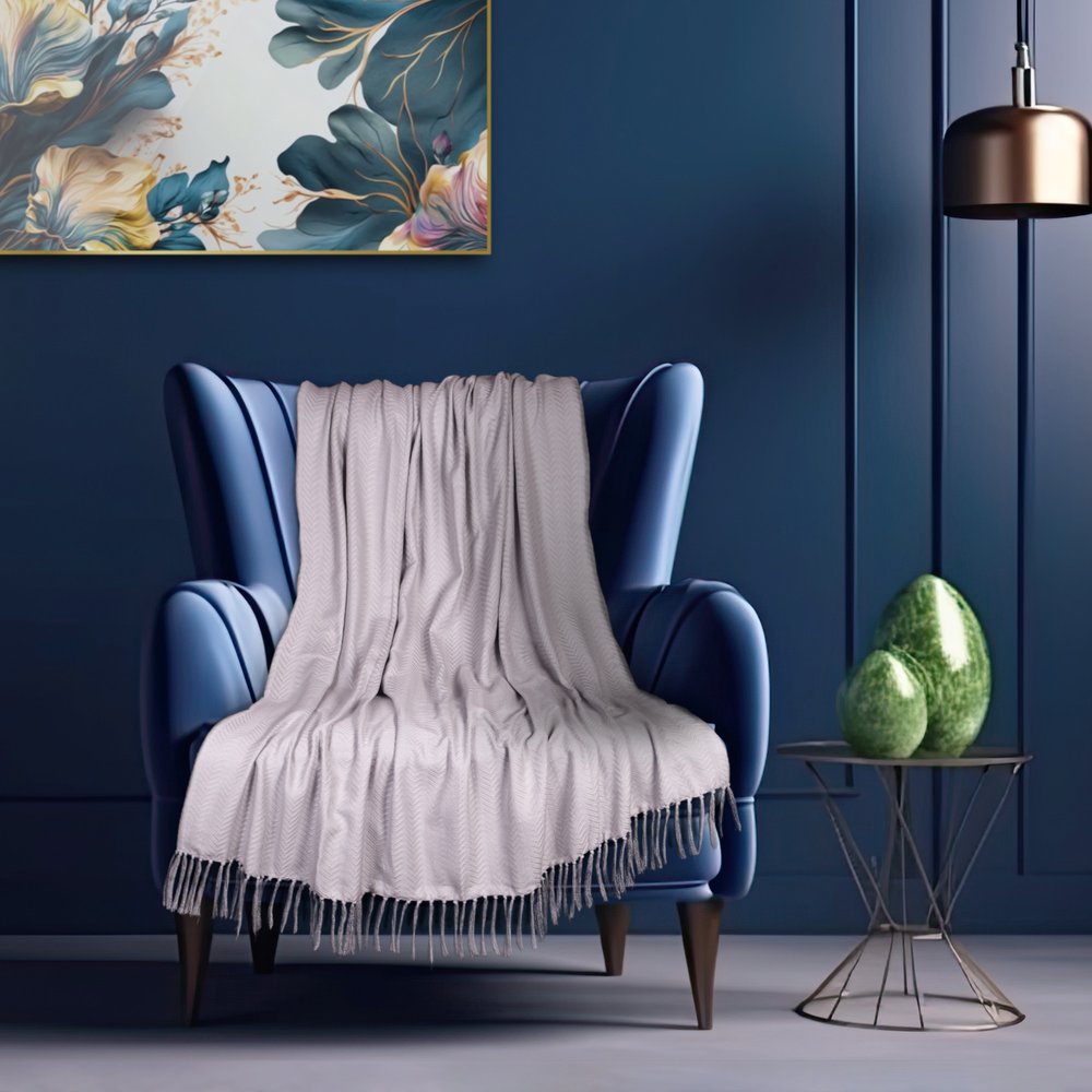 This welcoming 50-inch x 60-inch gray woven cotton herringbone throw blanket with fringe is a must-have for every sofa, chaise, and bed. Features a woven herringbone design that offers sumptuous softness and texture that you'll cherish for years to come. Made from cotton this blanket will make a great addition to any room it's added to. Layering your furnishings with a decorative throw has the ability to awaken a tired living room or elevate the design of your bedroom simply by providing elements of color and texture that weren't there before. This cozy throw blanket makes the perfect add-on to movie nights and lazy afternoons. 50-inch H x 60-inch W x 0.5-inch D