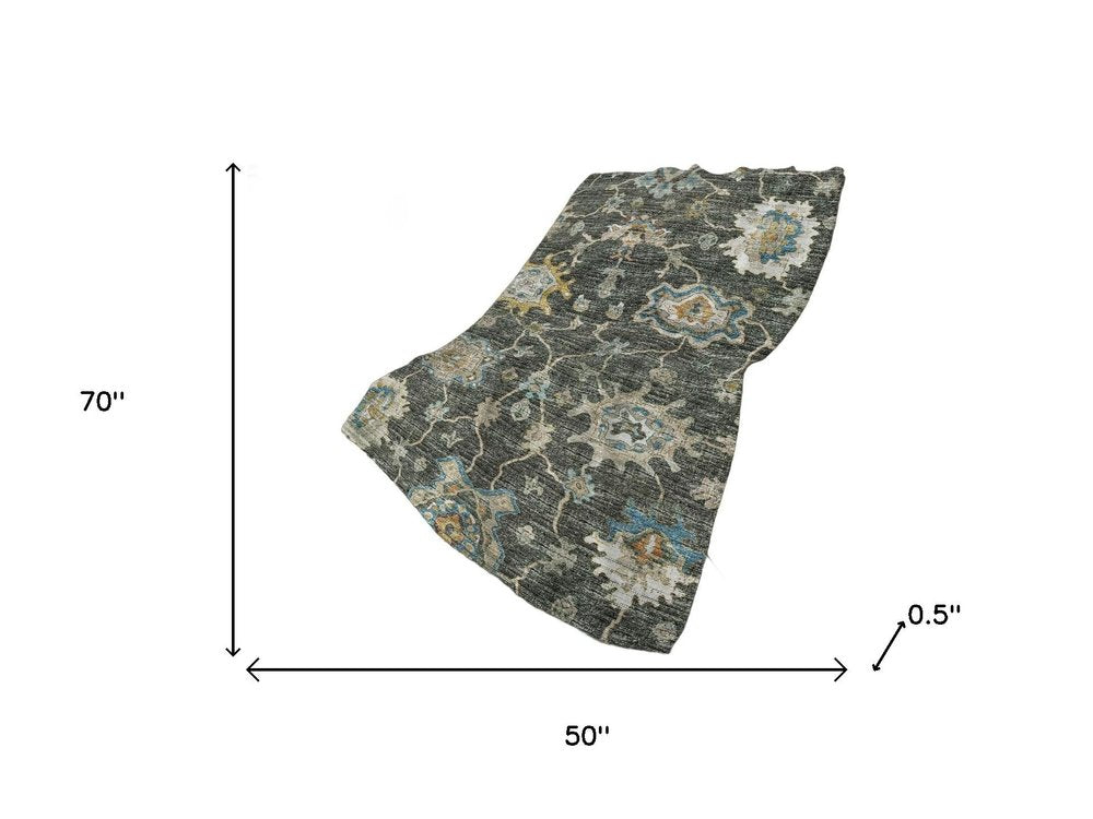 50" X 70" Beige Blue And Gold Floral Polyester Woven Plush Throw Blanket