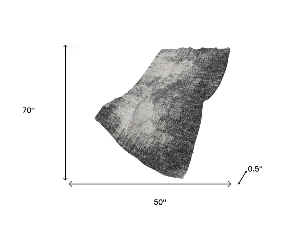 50" X 70" Black And Beige Abstract Polyester Woven Plush Throw Blanket