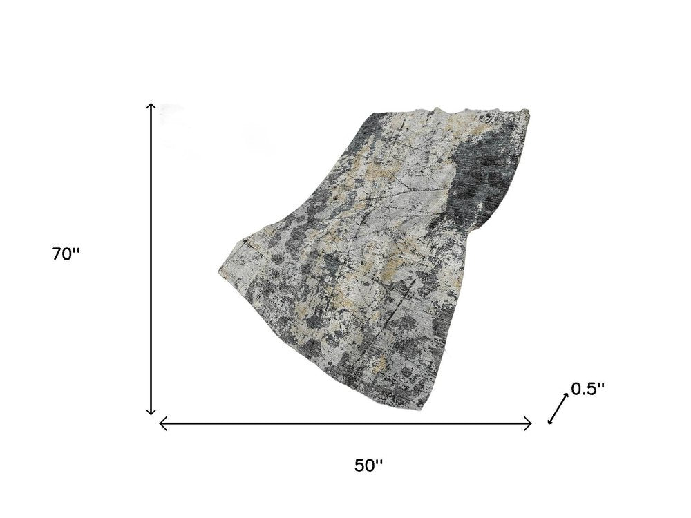 50" X 70" Black Silver And Gray Abstract Polyester Woven Plush Throw Blanket