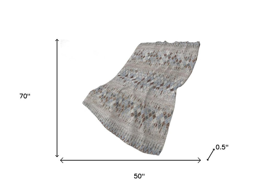 50" X 70" Blue And Gray Geometric Polyester Woven Plush Throw Blanket