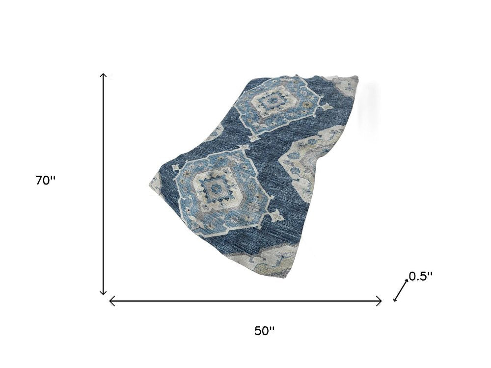 50" X 70" Blue And Ivory Floral Polyester Woven Plush Throw Blanket