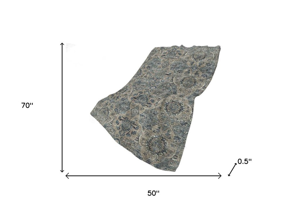 50" X 70" Blue And Pewter Damask Polyester Woven Plush Throw Blanket