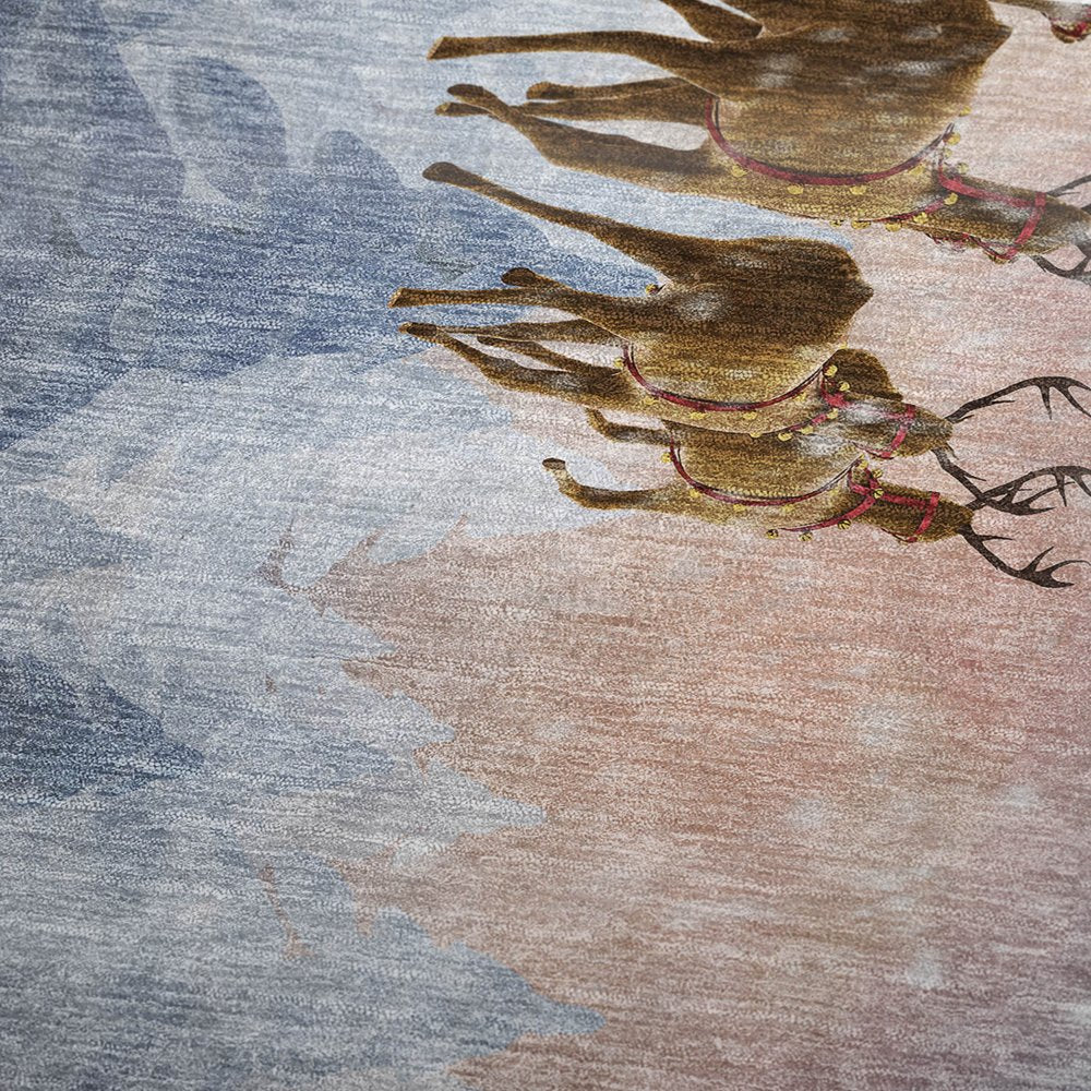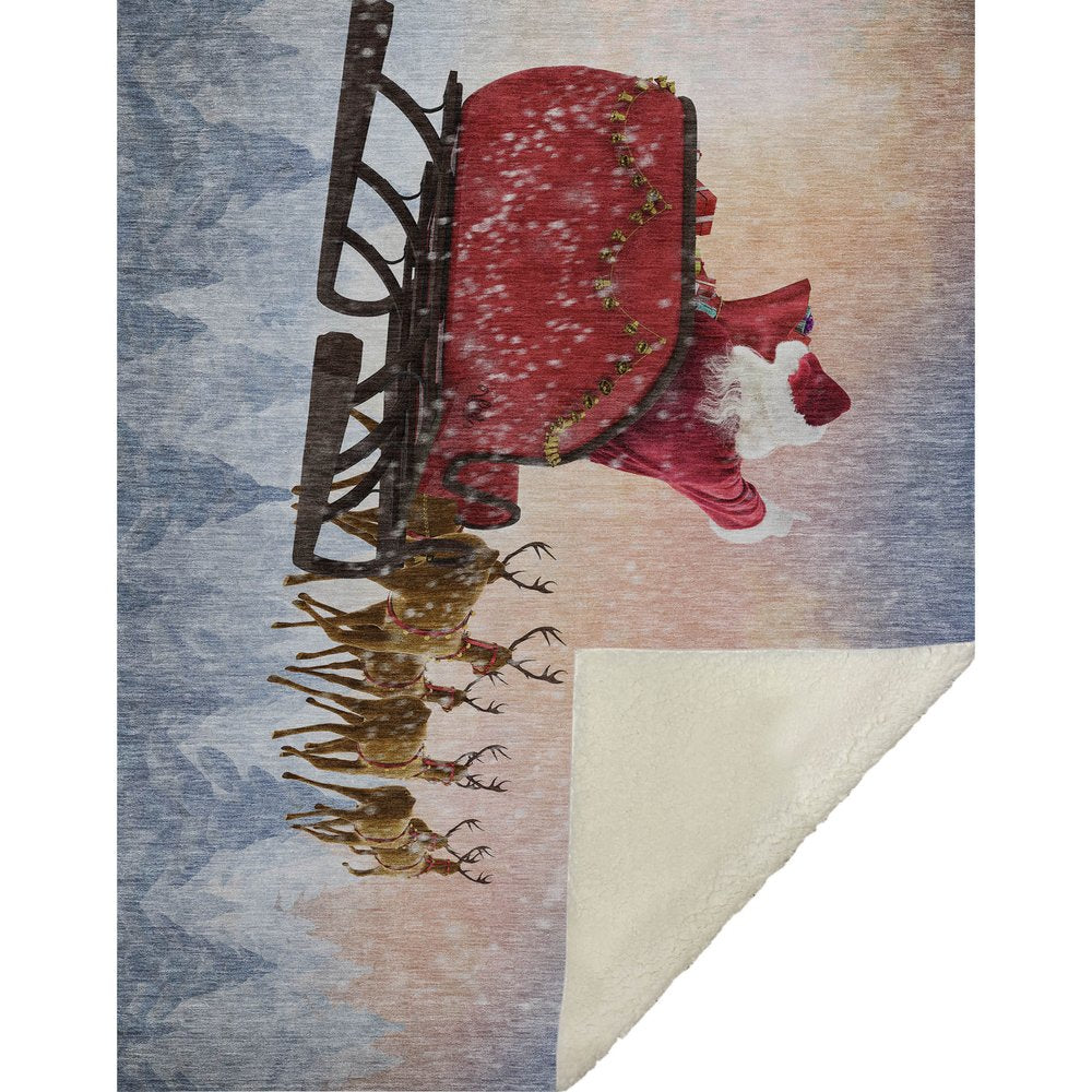 50" X 70" Blue Red And Brown Animal Print Polyester Woven Plush Throw Blanket