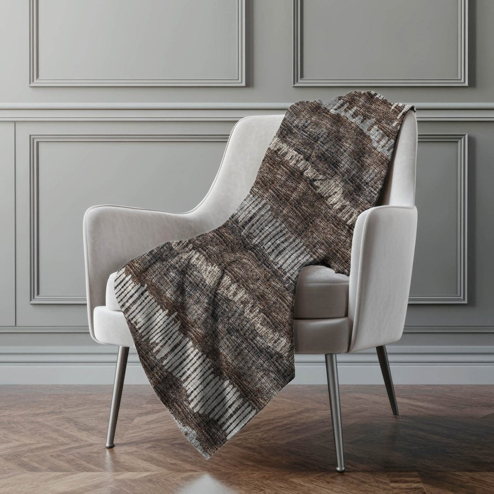 50" X 70" Brown And Beige Abstract Polyester Woven Plush Throw Blanket