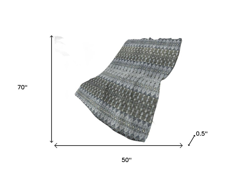 50" X 70" Gray And Charcoal Geometric Polyester Woven Plush Throw Blanket