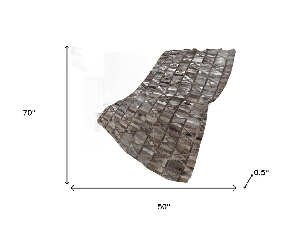 50" X 70" Gray Black And Beige Geometric Polyester Woven Plush Throw Blanket
