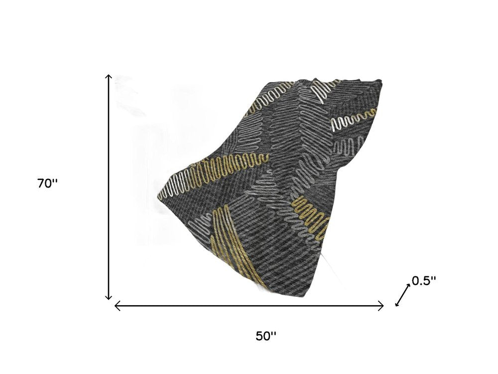50" X 70" Gray Gold And Charcoal Abstract Polyester Woven Plush Throw Blanket