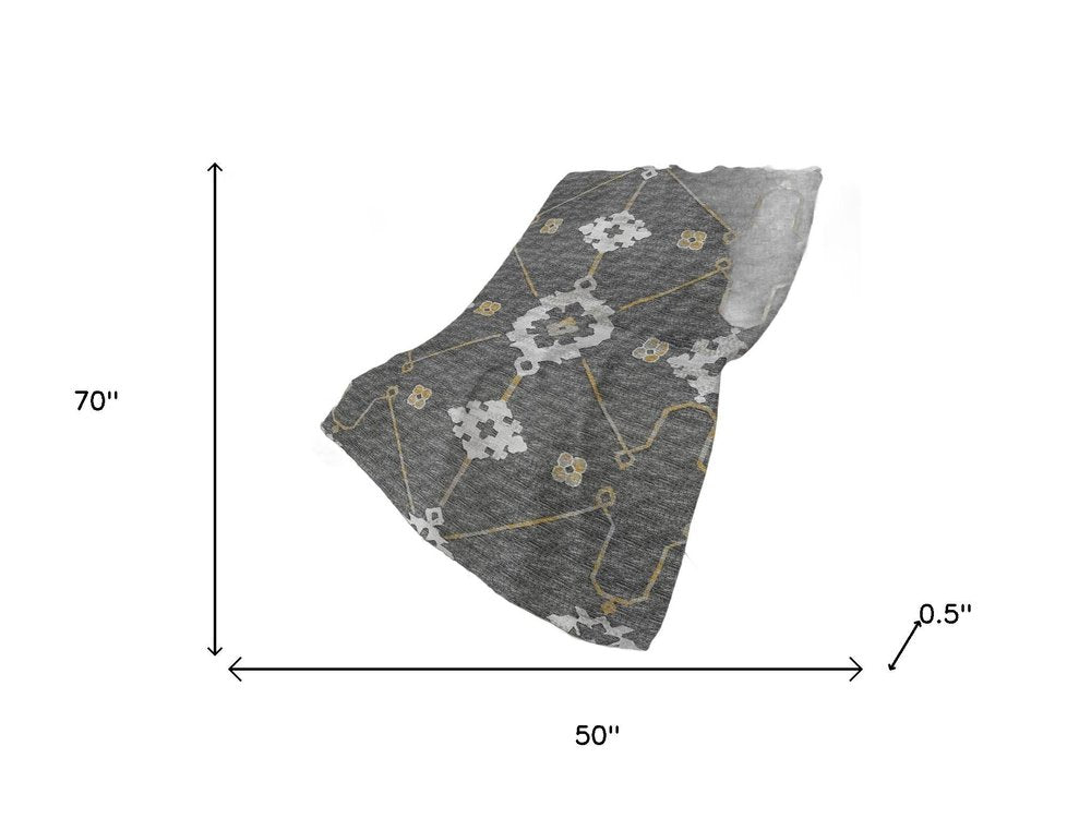50" X 70" Gray Ivory And Gold Floral Polyester Woven Plush Throw Blanket