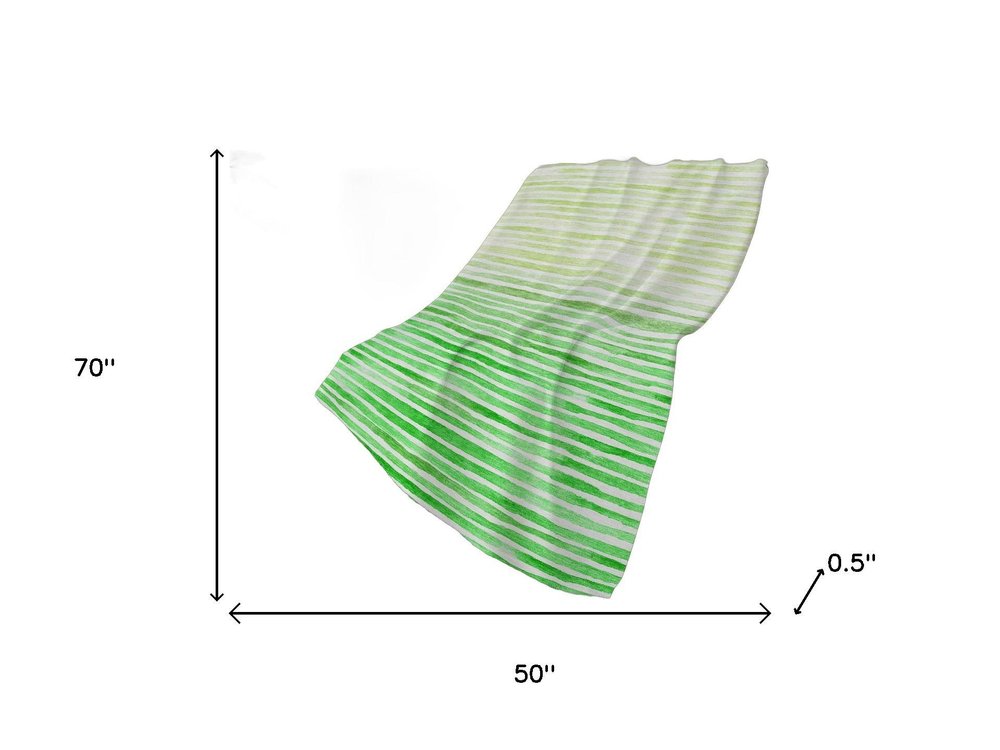 50" X 70" Green And Ivory Striped Polyester Woven Plush Throw Blanket