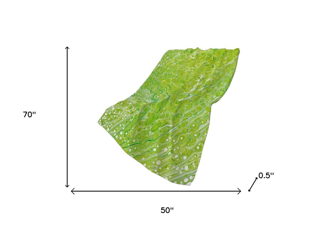 50" X 70" Green And Off White Abstract Plush Throw Blanket