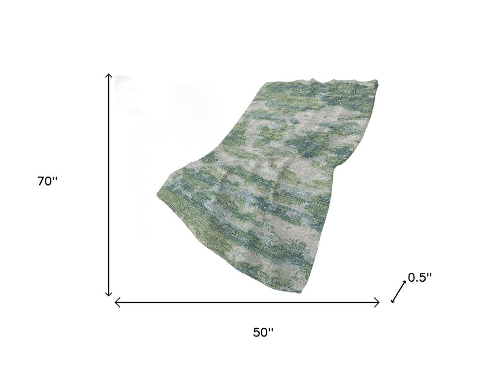 50" X 70" Green Teal And Beige Abstract Polyester Woven Plush Throw Blanket