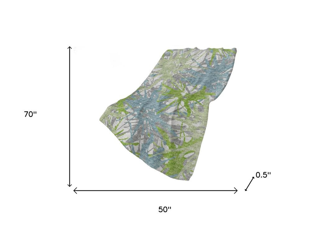 50" X 70" Green Teal And Gray Abstract Polyester Woven Plush Throw Blanket