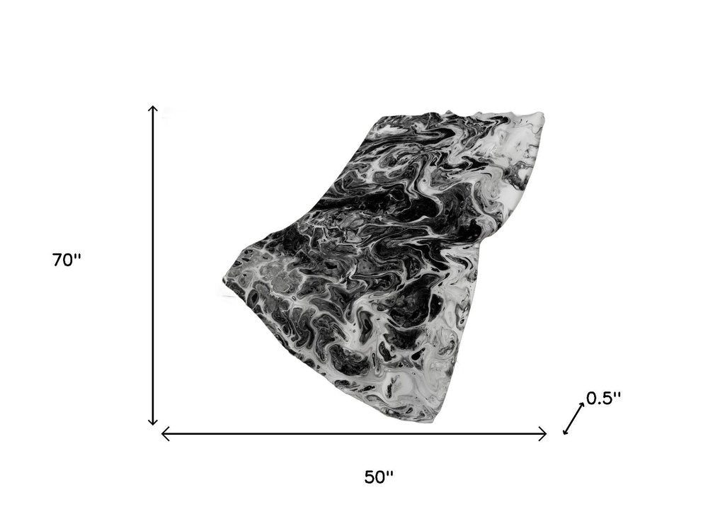 50" X 70" Ivory And Black Abstract Polyester Woven Plush Throw Blanket