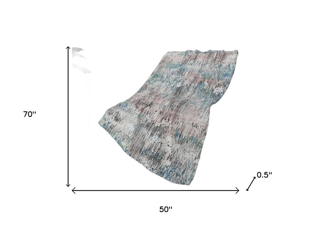 50" X 70" Ivory And Blue Abstract Polyester Woven Plush Throw Blanket