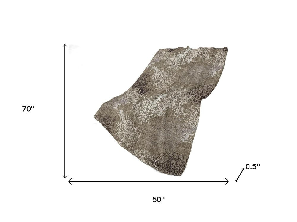 50" X 70" Latte Ivory And Beige Floral Polyester Woven Plush Throw Blanket