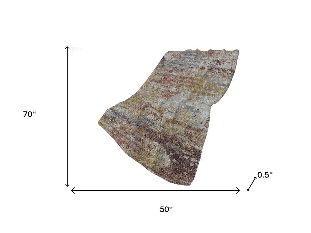 50" X 70" Mauve Copper And Silver Abstract Polyester Woven Plush Throw Blanket
