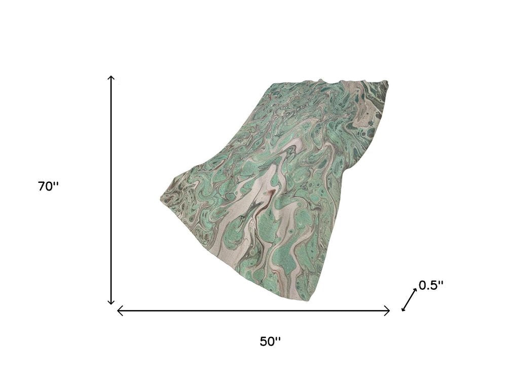 50" X 70" Mint Green And Ivory Abstract Polyester Woven Plush Throw Blanket