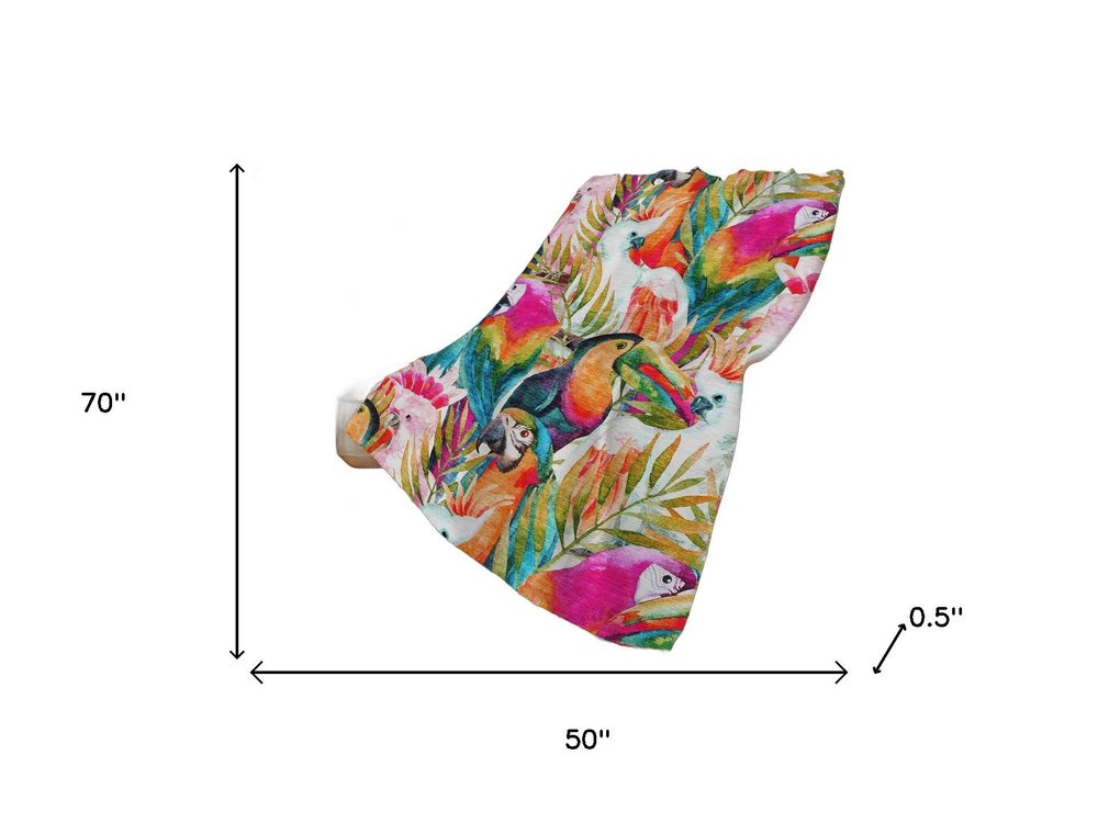 50" X 70" Orange Pink And Blue Animal Print Polyester Woven Plush Throw Blanket