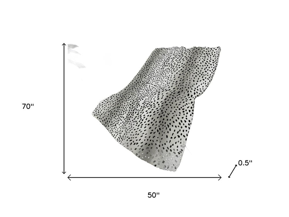 50" X 70" Pearl And Black Animal Print Polyester Woven Plush Throw Blanket
