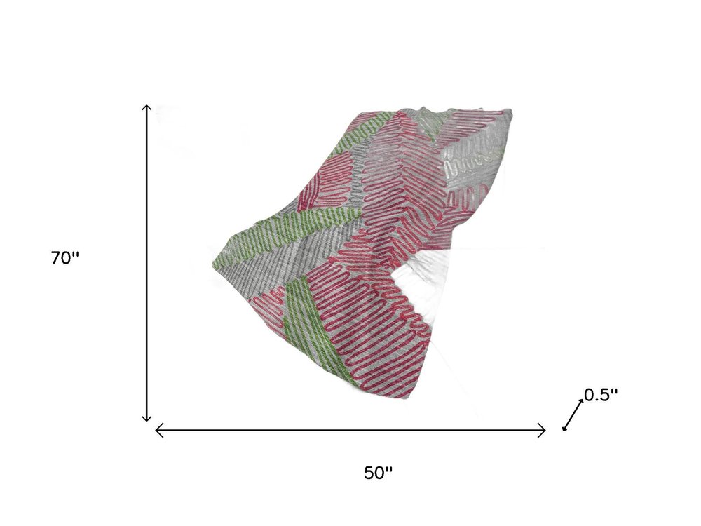 50" X 70" Pink Green And Gray Abstract Polyester Woven Plush Throw Blanket