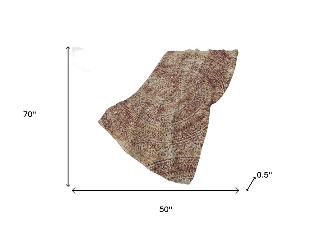 50" X 70" Rust And Beige Floral Polyester Woven Plush Throw Blanket
