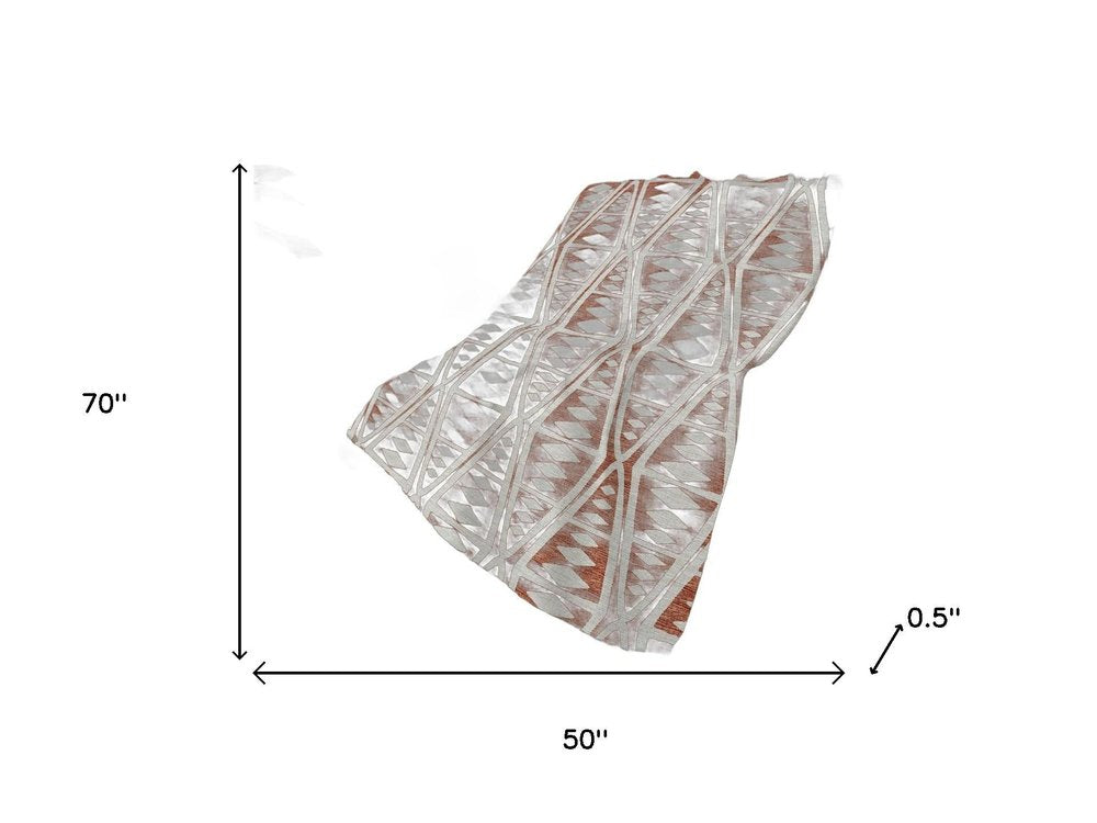 50" X 70" Rust And Beige Geometric Polyester Woven Plush Throw Blanket