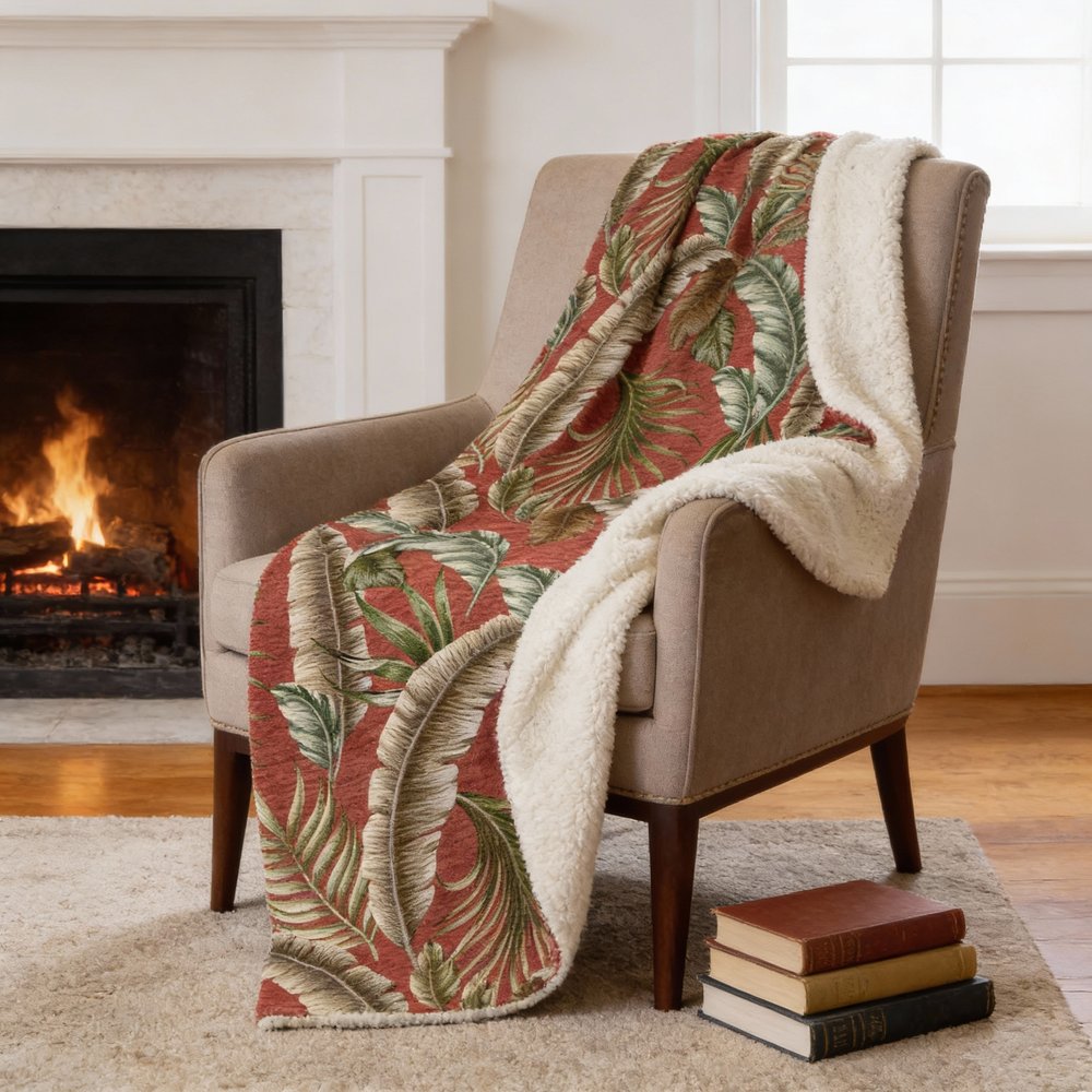 This 50-inch x 70-inch rust green and beige leaves microfiber plush throw blanket is a stylish addition to any sofa. This ultra-soft plush blanket is designed for ultimate softness. Features a woven leaves design that offers sumptuous softness and texture that you'll cherish for years to come. Made from microfiber this blanket will make a great addition to any room it's added to. Add extra texture to your decor and turn your room into an inviting space. This cozy throw blanket is sure to become your go-to couch companion. 70.00-inch h x 50.00-inch w x 0.50-inch d.